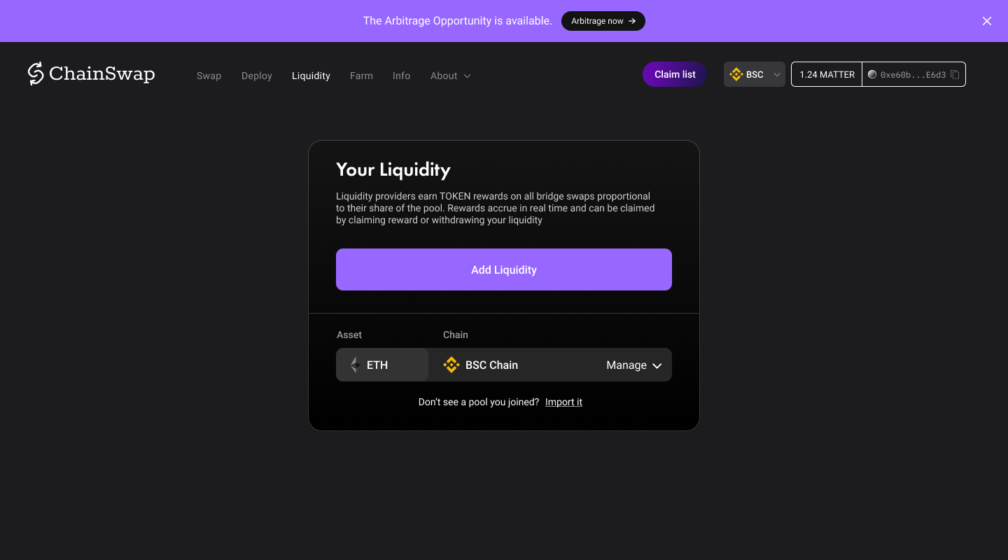 Arbitrage opportunities arise when an user wants to swap more assets than there is liquidity across chains. LP will be able to see arbitrage opportunity notifications on the manage liquidity page.